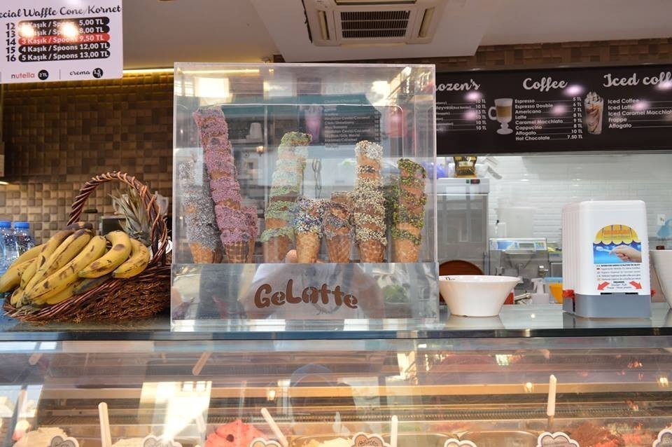 كافيه جيلاتي واحد من اشهر الكافيهات في انطاليا التي تقدم البوظة التركية الطبيعية وبنكهات متعددة وحلوى الوافل بالاضافة لتقديمه تشكيلة واسعة من المشاريب الساخنة والباردة والعصائر الطبيعية.
